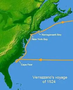 The voyage of Giovanni da Verrazzano in 1524