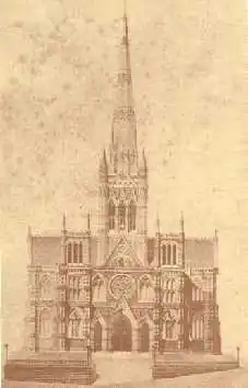 While Petre designed many churches, schools, public buildings, and private houses, his largest and grandest project, the Roman Catholic cathedral at Dunedin, was never fully completed. The entrance facade and the nave are built to the original design, and reveal the cathedral as a prime example of the French Gothic Revival. St Joseph's Cathedral, standing next to St Dominic's Priory, is reminiscent of many of the great Gothic cathedrals of Europe, with its twin towers and central rose window—Chartres and Notre Dame come to mind, although the original design if completed with its tower would have produced a building more like Rouen Cathedral. The architect's intention was for a mighty structure, with the twin towers dwarfed by a lofty spire some 60 metres (200 ft) in height, which would have been a magnificent edifice. In the event, the project stalled when a prudent Roman Catholic diocese reluctant to incur unnecessary debt with the onset of the 1880s depression postponed further work.