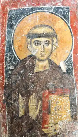 The oldest surviving depiction of Saint Francis is a fresco near the entrance of the Benedictine abbey of Subiaco, painted between March 1228 and March 1229. He is depicted without the stigmata, but the image is a religious image and not a portrait.[6]