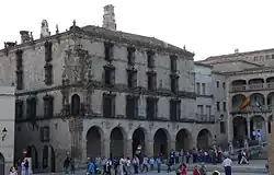 After returning from Peru extremely wealthy, the Pizarro family erected a plateresque-style palace on the corner of the Plaza Mayor in Trujillo. Francisca Pizarro Yupanqui and her uncle/husband Hernando Pizarro ordered the construction of the palace; it features busts of them and others.[28] It instantly became a recognizable symbol of the plaza.
