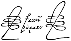Atahualpa's wife, 10-year-old Cuxirimay Ocllo Yupanqui, was with Atahualpa's army in Cajamarca and had stayed with him while he was imprisoned. Following his execution, she was taken to Cuzco, given the name Doña Angelina and made the concubine of Francisco Pizarro. By 1538, it was known she had borne Pizarro two sons, Juan and Francisco.[15]