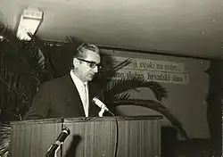 Between 1962 and 1967, he was the president of the Main Committee for International Relations of the Croatian League of Communists Main Board.[42] He was a deputy in the Croatian Parliament between 1965 and 1969.[43]