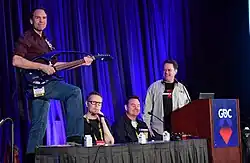 For the Forces of Corruption expansion pack, he took greater creative liberty with the Star Wars feel by writing an original theme for the new criminal faction.[25] In attempting to compose this piece, he wrote several preliminary hooks that were later integrated into the game's battle themes.[38] He composed six pieces for the expansion total, including the finale theme. In line with the criminal theme of the game, Klepacki borrowed motifs and recreated the mood from scenes involving Jabba the Hutt in Return of the Jedi.[39] His score for the expansion pack was accepted upon first submission to LucasArts.[39] As Petroglyph's audio director, he also selected sound effects, a tricky process due to the issue of making the criminal faction's sounds a "little different, without straying too much from the original signature sounds."[38] Klepacki worked with LucasArts to select voice actors, and contributed his own talents to the role of IG-88 and other minor characters.[38] A blooper reel of his voice acting was released on Petroglyph's forums after the one-thousandth member registered.[40] Klepacki was contacted to score Command & Conquer 3, but was too busy with duties at Petroglyph and declined to mention the offer publicly.[5][6] Electronic Arts hired Steve Jablonsky to score the game instead;[41] an EA community manager at C&C 3's forums suggested that the audio team studied Klepacki's music and tried to recreate his style.[42] Klepacki feels that Command & Conquer is a significant part of his life and that he would like to return to the Tiberian era.[8] He conceded that employment at Petroglyph games would probably prevent him from working with Electronic Arts.[6] Years later, in 2018, he would have that opportunity due to EA partnering with Petroglyph to remaster the games since many of the former developers from Westwood Studios had started, and continue to work at, Petroglyph.[43]