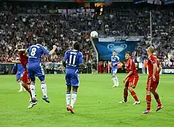 In the 2012 FA Cup Final, Lampard assisted Didier Drogba's winning goal in 2–1 win over Liverpool, the seventh FA Cup in Chelsea's history as well as the fourth of his career.[135] Lampard captained Chelsea in the 2012 Champions League final against Bayern Munich due to Terry's suspension. It was a match where Chelsea were considered to be the underdogs.[136] After finishing 1–1 in normal time, the game went to a penalty shootout with Lampard successfully converting his team's third spot-kick, helping Chelsea win 4–3 on penalties.[137] As Chelsea's captain for the match, Lampard lifted the trophy with club captain Terry.[138] Lampard ended the 2011–12 season as Chelsea's top scorer with 16 goals in all competitions, along with 10 assists.[139]