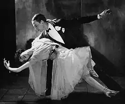 During the 1920s, Fred and Adele appeared on Broadway and the London stage. They won popular acclaim with the theater crowd on both sides of the Atlantic in shows such as Jerome Kern's The Bunch and Judy (1922), George and Ira Gershwin's Lady, Be Good (1924), and Funny Face (1927) and later in The Band Wagon (1931). Astaire's tap dancing was recognized by then as among the best. For example, Robert Benchley wrote in 1930, "I don't think that I will plunge the nation into war by stating that Fred is the greatest tap-dancer in the world."[23] While in London, Fred studied piano at the Guildhall School of Music alongside his friend and colleague Noël Coward,[24] and in 1926, was one of the judges at the 'Charleston Championship of the World ' competition at the Royal Albert Hall, where Lew Grade was declared the winner.[25][26]