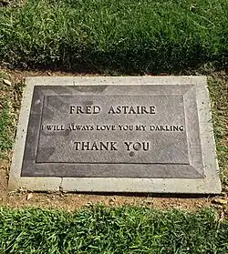 Astaire died of pneumonia on June 22, 1987, at the age of 88.[85][86] His body was buried at Oakwood Memorial Park Cemetery in Chatsworth, California.[87]
