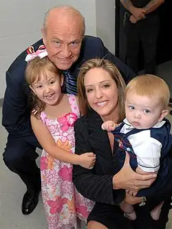 In July 1996, Thompson began dating Jeri Kehn (born 1966) and the two married almost six years later on June 29, 2002.[63] When he was asked in an Associated Press survey of the candidates in December 2007, to name his favorite possession he replied, tongue-in-cheek, "trophy wife".[64] The couple had two children together, a daughter Hayden born in 2003, and a son Samuel born in 2006.[65][66][67][68]