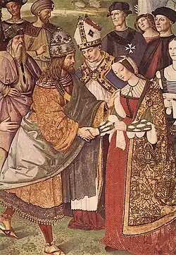 Detail of Aeneas Piccolomini introduces Eleonora of Portugal to Frederick III by Pinturicchio (1454–1513)