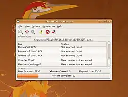 Because Microsoft Windows is the dominant operating system,[36] the majority of computer viruses target Windows.[37][38] Antivirus software such as ClamTk (shown here) is provided for Linux and other Unix-based systems, so that users can detect malware that might infect Windows hosts.