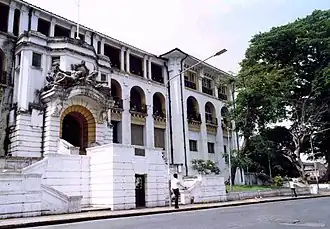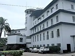 Aerial view Freetown Court and Cotton Tree Downtown Freetown Sierra Leone National Stadium Sierra Leone State House | |
