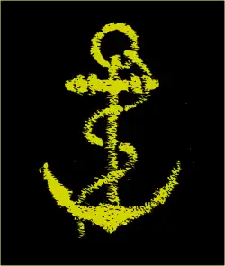 11. ^ L'Ordonnance royale de 1772 prévoit le port de l'ancre d'or sur les tenues des régiments des ports constituant le corps royal de la Marine, implantés à Toulon, Brest, Rochefort, Saint-Malo, Bordeaux, Le Havre, Bayonne et Cherbourg.