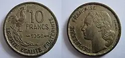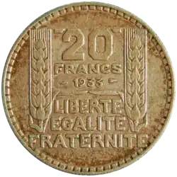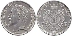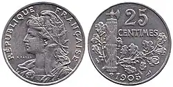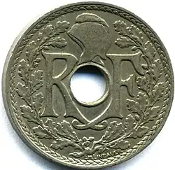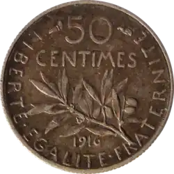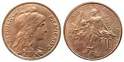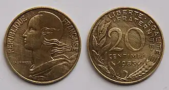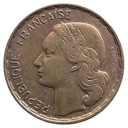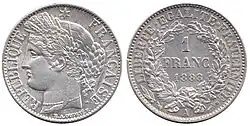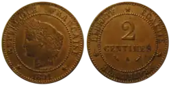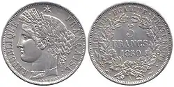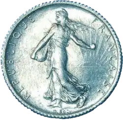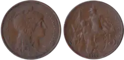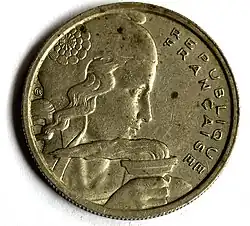 - ^ A continuation of the Ceres agricultural theme of coins of the 2nd Republic, as well as the revolutionary theme of Marianne wearing the liberty cap