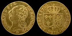 France entered another turbulent period during the War of the Spanish Succession from 1701 to 1714, resulting in another debasement of the livre tournois. Under King Louis XV's reign in 1726 the silver écu d'argent was issued at 8.3 to a mark of silver, 11/12 fine (hence 27.03 g fine silver), and valued at 6 livres. A new gold Louis d'or was also issued at 30 to a mark of gold, 11/12 fine (hence 7.4785 g fine gold), and valued at 24 livres.