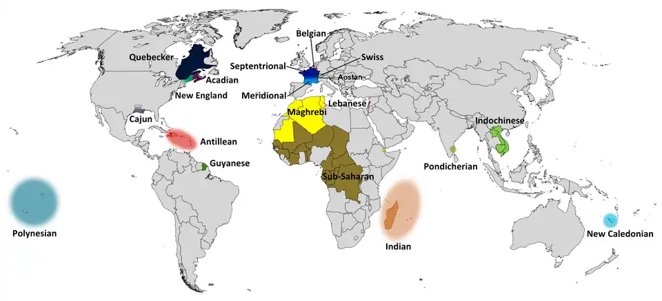 | Native to | France, Belgium, Switzerland, Monaco, Francophone Africa, Canada, and other locations in the Francophonie |