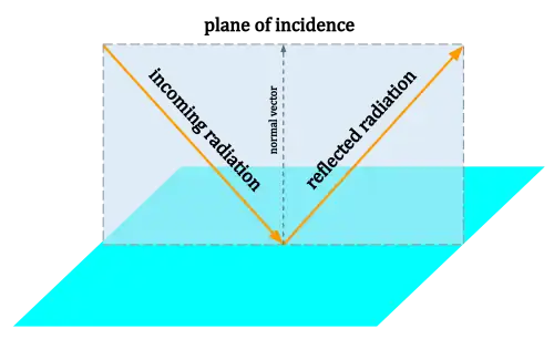 The plane of incidence is defined by the incoming radiation's propagation vector and the normal vector of the surface.