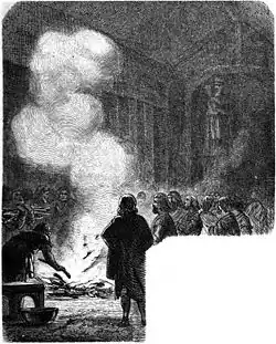 Great heathen sacrifices were held there at that time, and for a long while Frey had been the god who was worshipped most there – and so much power had been gained by Frey's statue that the devil used to speak to people out of the mouth of the idol, and a young and beautiful woman had been obtained to serve Frey. It was the faith of the local people that Frey was alive, as seemed to some extent to be the case, and they thought he would need to have a sexual relationship with his wife; along with Frey she was to have complete control over the temple settlement and all that belonged to it.