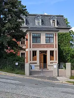Born on 15 October 1844, Nietzsche[14] grew up in the town of Röcken (now part of Lützen), near Leipzig, in the Prussian Province of Saxony. He was named after King Friedrich Wilhelm IV of Prussia, who turned 49 on the day of Nietzsche's birth (Nietzsche later dropped his middle name, Wilhelm). Nietzsche's great-grandfather, Gotthelf Engelbert Nietzsche (1714–1804), was an inspector and a philosopher. Nietzsche's grandfather, Friedrich August Ludwig Nietzsche (1756–1826), was a theologian.[15] Nietzsche's parents, Carl Ludwig Nietzsche (1813–1849), a Lutheran pastor[16] and former teacher; and Franziska Nietzsche (née Oehler) (1826–1897), married in 1843, the year before Friedrich's birth. They had two other children: a daughter, Elisabeth Förster-Nietzsche, born in 1846; and a second son, Ludwig Joseph, born in 1848. Nietzsche's father died of a brain disease in 1849, after a year of excruciating agony, when the boy was only four years old; Ludwig Joseph died six months later at age two.[17] The family then moved to Naumburg, where they lived with Nietzsche's maternal grandmother and his father's two unmarried sisters. After the death of Nietzsche's grandmother in 1856, the family moved into their own house, now Nietzsche-Haus, a museum, and Nietzsche study centre.