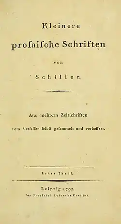 - ^ Sharpe, Lesley (1995). Schiller's Aesthetic Essays: Two Centuries of Criticism. Camden House. p. 58.