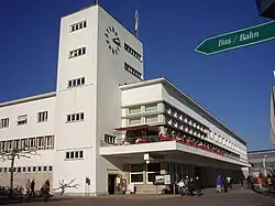 Friedrichshafen Airport (Flughafen) is the local airport. The Zeppelin manufacturing company Luftschiffbau Zeppelin (LZ) was re-established in 1993, and a commercial airline Deutsche Zeppelin Reederei (DZR) began flying passenger service from Friedrichshafen Airport in 2001. However, in recent years, passenger numbers have decreased such that, as of 2024, Friedrichshafen Airport no longer connects any domestic destinations.[9] The nearest major airport is Zurich Airport, located 97 km (60 mi) south west of the city.