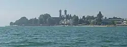 View from Lake Constance of All Saints' Church and Graf Zeppelin House