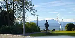 Zeppelin-Statue at Graf Zeppelin House, Säntis in the background