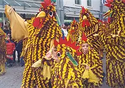 Children and adults wearing Seegockel at the carnival parade