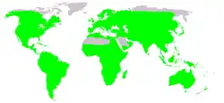 | Native distribution of frogs (in green) | |