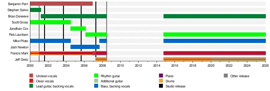- Francis Mark – clean vocals (2000–2008; 2014–present); unclean vocals (2006–2008; 2014–present); piano (2001–2008; 2014–present); drums (2000–2006)