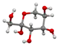 The primary reason that fructose is used commercially in foods and beverages, besides its low cost, is its high relative sweetness. It is the sweetest of all naturally occurring carbohydrates. The relative sweetness of fructose has been reported in the range of 1.2–1.8 times that of sucrose.[19][20][21][22] However, it is the 6-membered ring form of fructose that is sweeter; the 5-membered ring form tastes about the same as usual table sugar. Warming fructose leads to formation of the 5-membered ring form.[23] Therefore, the relative sweetness decreases with increasing temperature. However, it has been observed that the absolute sweetness of fructose is identical at 5 °C as 50 °C and thus the relative sweetness to sucrose is not due to anomeric distribution but a decrease in the absolute sweetness of sucrose at higher temperatures.[21]