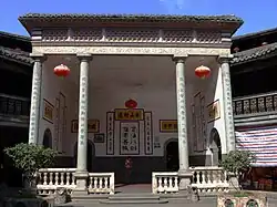 Western influence is evident in the Greek style columns of the ancestral hall, and in the wrought iron railing of the second level corridor.