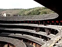 The Fujian tulou (simplified Chinese: 福建土楼; traditional Chinese: 福建土樓; pinyin: Fújiàn tǔlóu; lit. 'Fujian earthen buildings') are Chinese rural dwellings[1] unique to the Hakka in the mountainous areas in southeastern Fujian, China. They were mostly built between the 12th and the 20th centuries.[2]