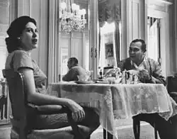 In a bid to profit from such an environment, Batista established lasting relationships with organized crime, notably with American mobsters Meyer Lansky and Lucky Luciano, and under his rule Havana became known as "the Latin Las Vegas".[50] Batista and Lansky formed a friendship and business relationship that flourished for a decade. During a stay at the Waldorf-Astoria in New York in the late 1940s, it was mutually agreed that, in return for kickbacks, Batista would give Lansky and the Mafia control of Havana's racetracks and casinos.[51] After World War II, Luciano was paroled from prison on the condition that he permanently return to Sicily. Luciano secretly moved to Cuba, where he worked to resume control over American Mafia operations. Luciano also ran a number of casinos in Cuba with the sanction of Batista, though the American government eventually succeeded in pressuring the Batista government to deport him.[52]