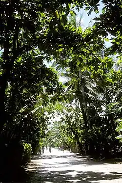 There are at least 29 islets in the Funafuti atoll.[1] The largest is Fongafale, followed by Funafala. At least three of these islets are inhabited: Fongafale (the main island) in the east, Funafala in the south, and Amatuku in the north.