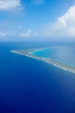 Funafuti is an atoll, comprising numerous islets, that is a capital of Tuvalu.[1][2] As of the 2017 census, it has a population of 6,320 people.[3] More people live in Funafuti than the rest of Tuvalu combined, with it containing approximately 60% of the nation's population. The main islet, Fongafale, hosts Vaiaku, the administrative center of the nation.
