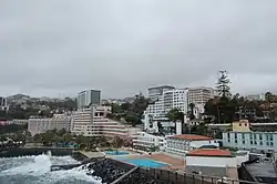 Funchal (Portuguese pronunciation: [fũˈʃal] ⓘ), officially City of Funchal (Portuguese: Cidade do Funchal), is the capital, largest city and a municipality in Portugal's Autonomous Region of Madeira, bordered by the Atlantic Ocean. The city has a population of 105,795,[1] making it the sixth largest city in Portugal. Because of its high cultural and historical value, Funchal is one of Portugal's main tourist attractions; it is also popular as a destination for New Year's Eve, and it is the leading Portuguese port on cruise liner dockings.[1]