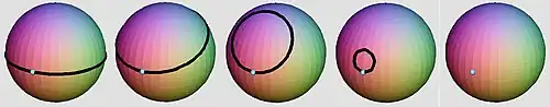 A path-connected space whose fundamental group is trivial is called simply connected. For example, the 2-sphere depicted on the right, and also all the higher-dimensional spheres, are simply-connected. The figure illustrates a homotopy contracting one particular loop to the constant loop. This idea can be adapted to all loops such that there is a point that is not in the image of However, since there are loops such that (constructed from the Peano curve, for example), a complete proof requires more careful analysis with tools from algebraic topology, such as the Seifert–van Kampen theorem or the cellular approximation theorem.