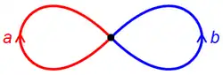 where a and b are the two loops winding around each half of the figure as depicted, and the exponents are integers. Unlike the fundamental group of the figure eight is not abelian: the two ways of composing and are not homotopic to each other: