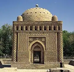 A number of distinct architectural traditions arose for expressing these social elements. The Islamic tradition was slow in starting; the hadith "condemn the building of tombs, and Muhammad himself set the example of requesting burial in an unmarked grave in one of the chambers of his house" in Medina,[129] though by at least the 12th century, buildings of the vast Al-Masjid an-Nabawi complex already marked the site. The earliest identified Muslim monumental tomb, in Samarra in Iraq, only dates from 862, and was commissioned by the Byzantine princess whose son was buried there.[130] At some point, the tradition incorporated the idea of a garden setting, perhaps following the Islamic concept of Paradise, an association certainly made when the tradition was mature, although the difficulty of reconstructing gardens from archaeology makes the early stages of this process hard to trace. At any rate, gardens surrounding tombs became established in Islamic tradition in many parts of the world, and existing pleasure gardens were sometimes appropriated for this purpose. Versions of the formal Persian charbagh design were widely used in India, Persia and elsewhere.[131]