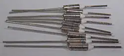 Louis Clément François Breguet recommended the use of reduced-section conductors to protect telegraph stations from lightning strikes; by melting, the smaller wires would protect apparatus and wiring inside the building.[1] A variety of wire or foil fusible elements were in use to protect telegraph cables and lighting installations as early as 1864.[2]