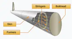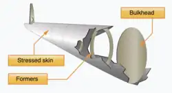 Both monocoque and semi-monocoque are referred to as "stressed skin" structures as all or a portion of the external load (i.e. from wings and empennage, and from discrete masses such as the engine) is taken by the surface covering. In addition, all the load from internal pressurization is carried (as skin tension) by the external skin.