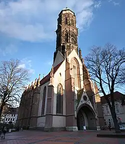 The 14th and 15th centuries thus represent a time of political and economic power expansion, which is also reflected in the contemporary architecture. The expansion of the St. Johannis Church to a Gothic hall church began in the first half of the 14th century. As of 1330, a Gothic structure also replaced the smaller St Nikolai Church (St. Nicholas's). After completion of the work on St John's Church, the rebuilding of St James's Church was begun in the second half of the 14th century. The original, smaller church that preceded this building was probably initiated by Henry the Lion or his successor, and functioned as a fortress chapel to the city fortress that lay immediately behind it. The representative old town hall was built between 1366 and 1444.