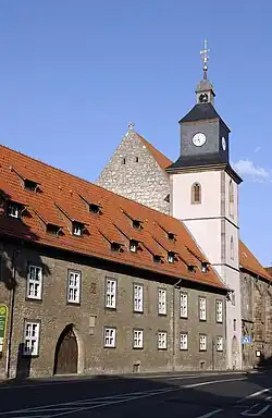 The area secured by the initial fortification included the old market place, the old town hall, the two main churches, St. Johannes (St John's) and St. Jacobi (St. James's), the smaller church St. Nikolai (St. Nicholas's), as well as the large Weender Straße, Groner Straße and Rote Straße (red street). Outside the fortification in front of the Geismar city gate lay the old village with the Church of St. Alban, which was subsequently known as Geismarer altes Dorf (old Geismar village). This village was only to a limited extent under Welfish control and thus could not be included in the town's privileges and fortifications.