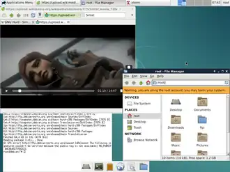 ![]() Debian GNU/Hurd with Xfce4 and web browser Midori | |