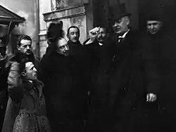 Narutowicz served as president of Poland for a mere five days.[17] During his oath of office ceremony on 11 December 1922, members of the National Democracy and others manifested their opposition against the president-elect with anti-government demonstrations in Warsaw. Earlier on that day, opponents of his election attempted to prevent the president-elect from entering the Sejm by blocking the streets and throwing mud at his motorcade. Narutowicz was never comfortable with the widespread belief that he was a representative of the left-wing in Polish politics. He had only become the candidate of the Polish Peasant Party "Wyzwolenie" by happenstance; he had also not expected to win the election (in its first-round Narutowicz gained just 62 votes whereas Count Zamoyski had 222).[12]