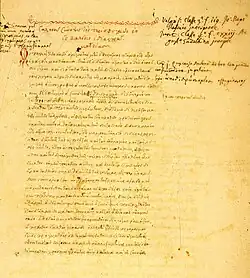 Michael Servetus, using the name "Michel de Villeneuve" during his stay in France, was Vesalius' fellow student and the best Galenist at the University of Paris, according to Johann Winter von Andernach,[100] who taught both. In the Galenism of the Renaissance, editions of the Opera Omnia by Galen were very important, beginning from the Aldine Press' editio princeps in Venice in 1525.[101] It was followed in Venice in 1541–1542 by the Giunta. There were fourteen editions of the book from that date until 1625. Just one edition was produced from Lyon between 1548 and 1551. The Lyon edition has commentaries on breathing and blood streaming that correct the work of earlier renowned authors such as Vesalius, Caius, or Janus Cornarius. "Michel De Villeneuve" had contracts with Jean Frellon for that work, and the Servetus scholar-researcher Francisco Javier González Echeverría[102][103] presented research that became an accepted communication in the International Society for the History of Medicine,[104] which concluded that Michael De Villeneuve (Michael Servetus) is the author of the commentaries of this edition of Frellon, in Lyon.[105][106]