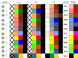- Original Game Boy Game Pak (gray case): The classic Game Boy cartridges. The Game Boy Color applies a limited color palette (often dark green) using four to ten colors to enhance games originally intended to be presented in four shades of gray.[44] The Game Boy Color's "bootstrap" ROM was programmed with default color palettes for more than 90 titles, mainly first-party releases and popular games from other publishers.[45] For games without a default, users can choose from 12 different palettes, including one which replicates the original Game Boy's grayscale experience, by pressing down a combination of buttons at startup.
