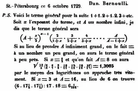 - ^ "Interpolating the natural factorial n! or The birth of the real factorial function (1729 - 1826)".