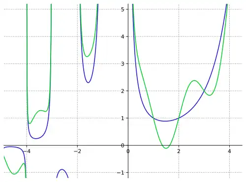 The gamma function must alternate sign between its poles at the non-positive integers because the product in the forward recurrence contains an odd number of negative factors if the number of poles between and is odd, and an even number if the number of poles is even.[14] The values at the local extrema of the gamma function along the real axis between the non-positive integers are: