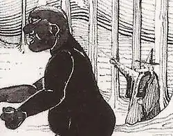 ![]() Detail of Gandalf (right) as the Sun rises, turning the trolls to stone in one of J.R.R. Tolkien's drawings for The Hobbit | |
