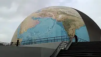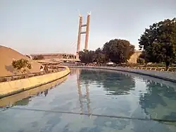 Gandhinagar lies on the west bank of the Sabarmati River, about 545 kilometres (339 mi) north of Mumbai and 901 kilometres (560 mi) southwest of Delhi.[5] The Akshardham temple is located in Gandhinagar.[6] There was a determination to make Gandhinagar a purely Indian enterprise, partly because the state of Gujarat was the birthplace of Mahatma Gandhi. For this reason, the planning was done by two Indian town planners: Prakash M Apte and H. K. Mewada, who had apprenticed with Le Corbusier in Chandigarh.[7]